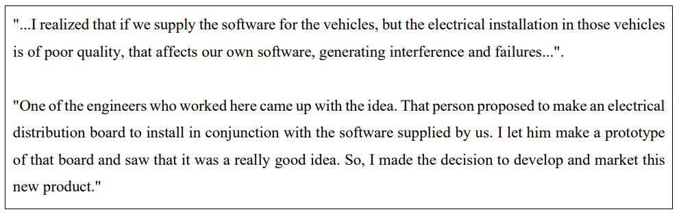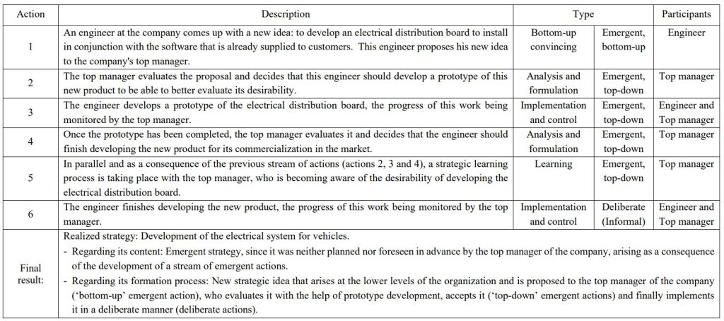 Table 1. Description of the strategic process that led to the development of the electrical system for ‘vehicles’, in the literal words of the company’s founder and top manager
